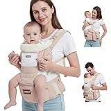 Baby Carrier with Hip Seat, 6-in-1 Baby Carrier Newborn to Toddler, Adjustable Detachable Infant Toddler Carrier, Hands-Free Baby Holder, All Seasons, Perfect for Shopping Travelling (Khaki)